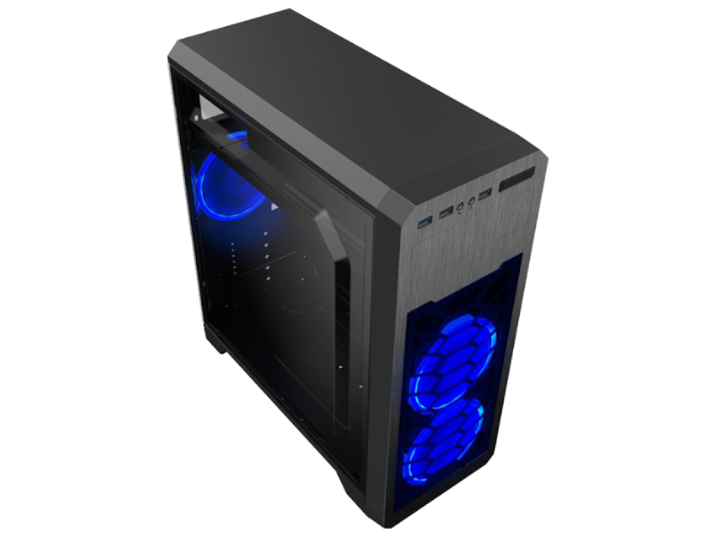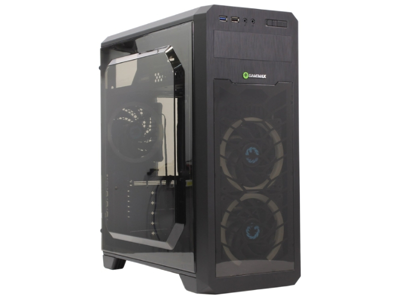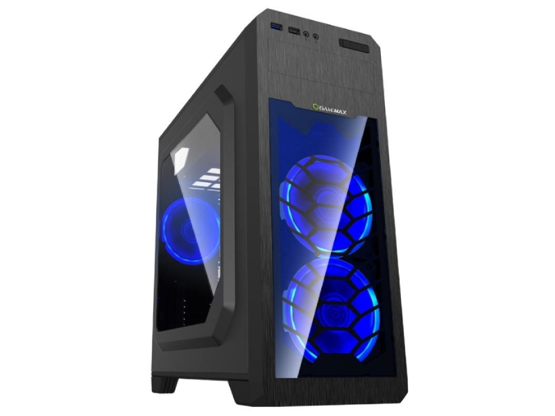 Case ATX GAMEMAX G563, w/o PSU, 3x120mm, Blue LED, Full Transparent panel, USB3.0, Black