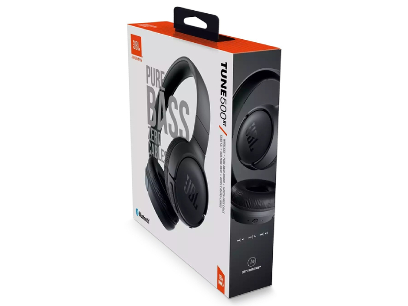 JBL TUNE 500 / On-ear Headset with microphone, Dynamic driver 32 mm, Frequency response 20 Hz-20 kHz, 1-button remote with microphone, JBL Pure Bass sound, Tangle-free flat cable, 3.5 mm jack, Black