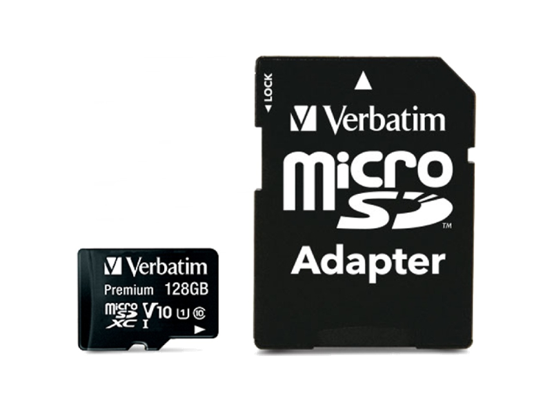 128GB microSD Class10 A1 UHS-I + SD adapter Verbatim Premium microSDXC, 600x, Up to: 90MB/s