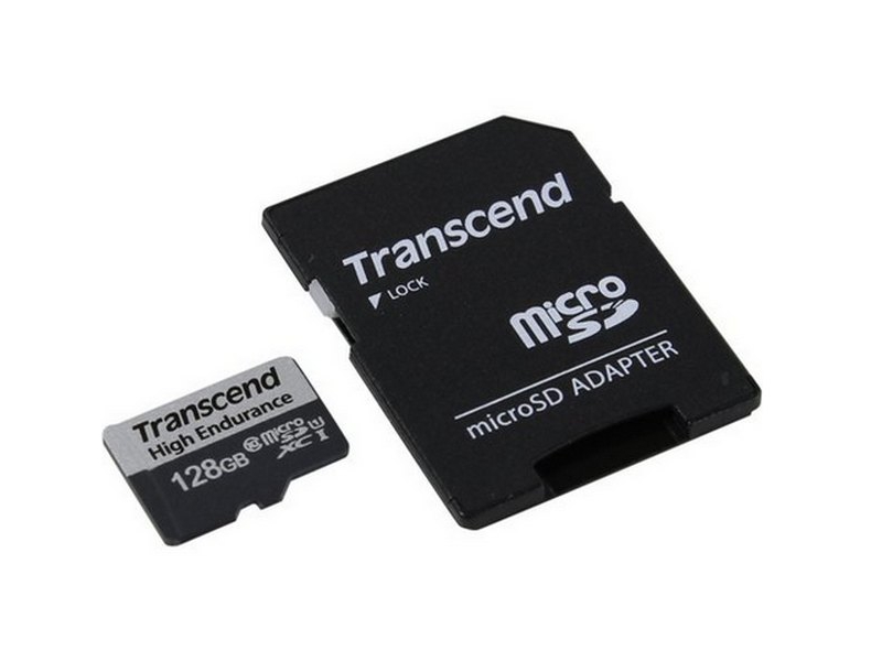 128GB MicroSD (Class 10) UHS-I (U1),+SD adapter, Transcend "TS128GUSD350V" (R/W:95/45MB/s,Endurance)