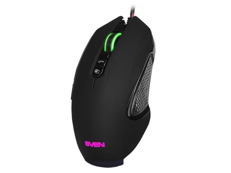 Gaming Mouse SVEN RX-G955, Optical 600-4000 dpi, 8 buttons, Soft Touch, Backlight, Macro, Black, USB